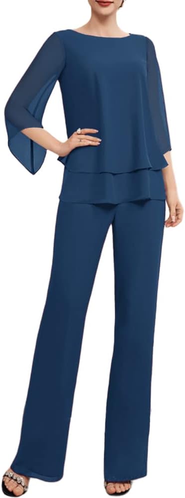 Women’s Wedding Chiffon Pant Suit Elegant 2 Piece Set Mother of Bride Wear
