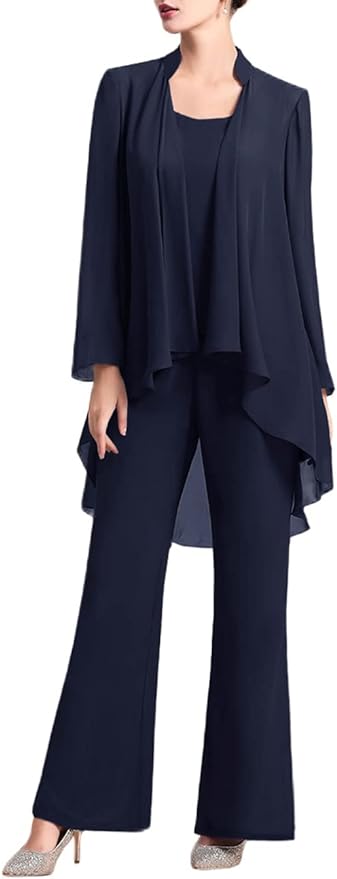 Women's Mother of The Bride Pant Suits 3 Pieces Chiffon Outfit Sets for Wedding Guest Evening Party Gowns