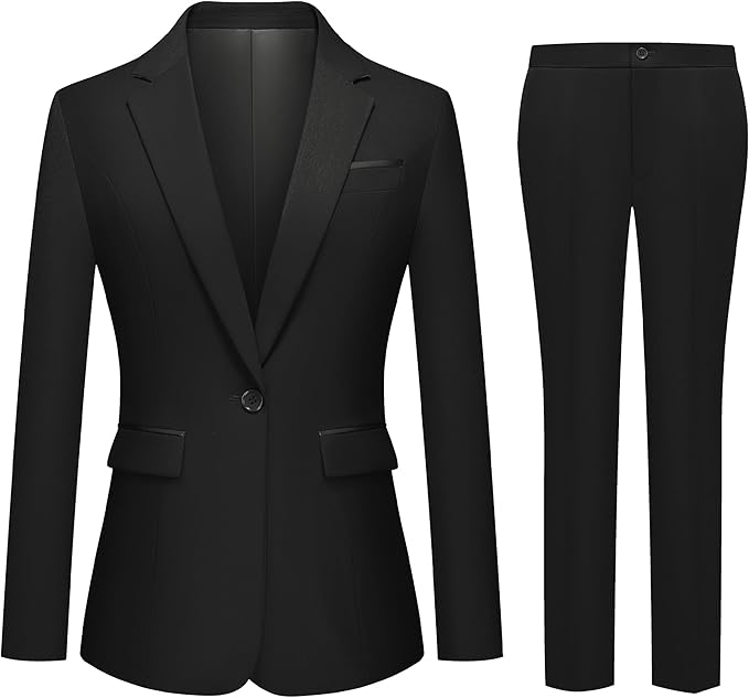 Womens 2 Piece Pants Suit Solid Notch Lapel One Button Slim Fit Blazer Jacket Elastic Waist Pants Tuxedo Set