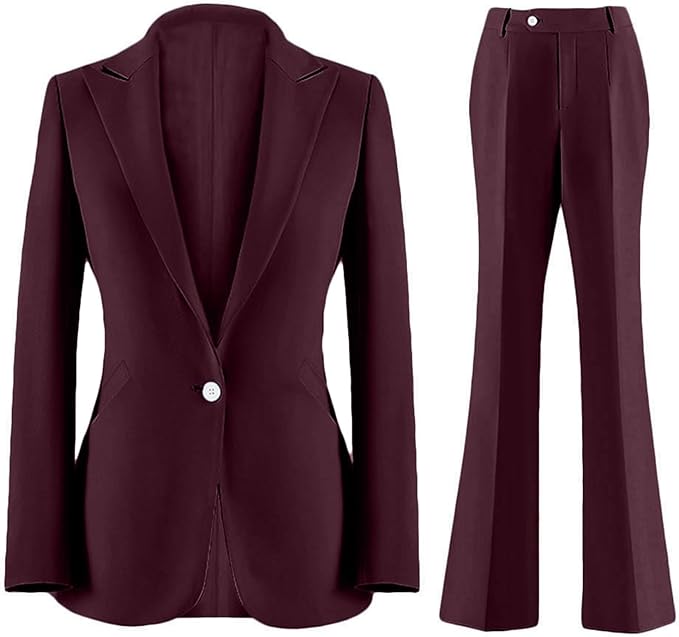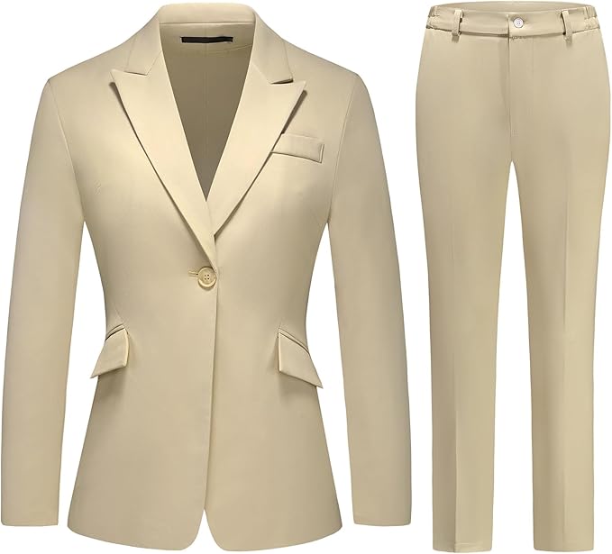 Women's Suits 2 Piece Work Office Peak Lapel Slim Fit Office Lady Blazer Pants