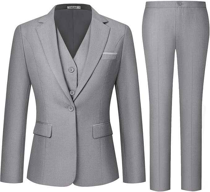 Women's 3 Piece Suit Lady Business Casual Office One Button Slim Fit Blazer Jacket Vest Pants Set
