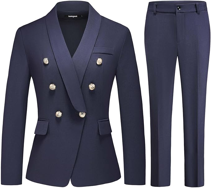 Womens Suits 2 Piece Set Shawl Lapel Jacket and Pants Business Casual Outfits (Navy, 3X-Large)