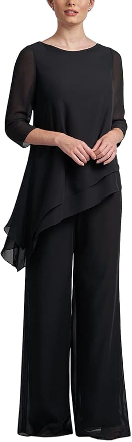 Women’s Dressy Pant Suit Wedding Evening Outfits 2 Piece Chiffon Formal Pantsuits