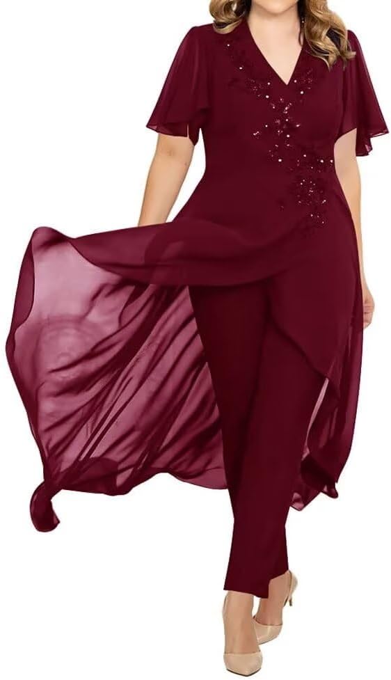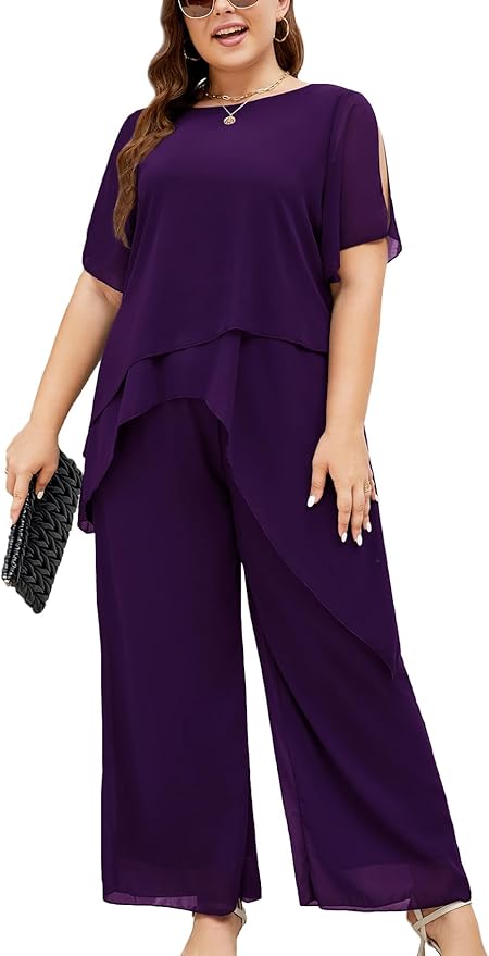 Plus Size Dressy Chiffon Pant Suit 2 Piece for Wedding Mother of The Bride Groom Formal Set Elegant Outfit