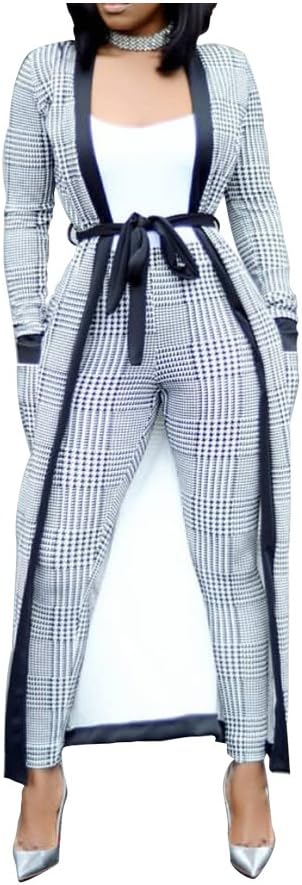 Womens Sexy 2 Pieces Houndstooth Print Blazer Pants Suit Set Nightclub Tracksuit Outfit Set