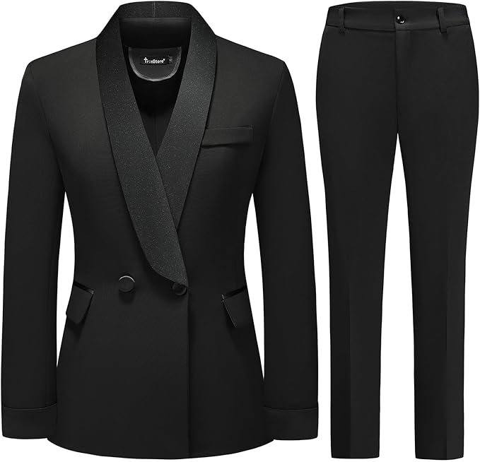 Women's Pants Suit 2 Piece Set Smil Fit Jacket Shawl Sollar Blazer Dress for Women