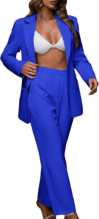 Womens Fall Fashion 2 Piece Blazer Sets Open Front Blazers and Slim Fit Pants Suits Set
