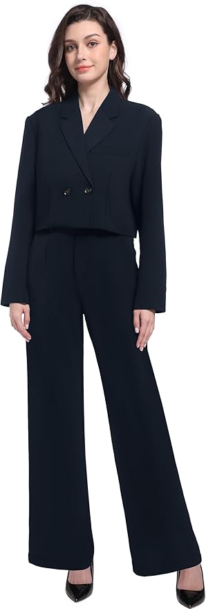Women's Suit 2 Piece Set Business Casual Outfits Cropped Blazer Jackets High Waisted Wide Leg Work Pants Suits Set