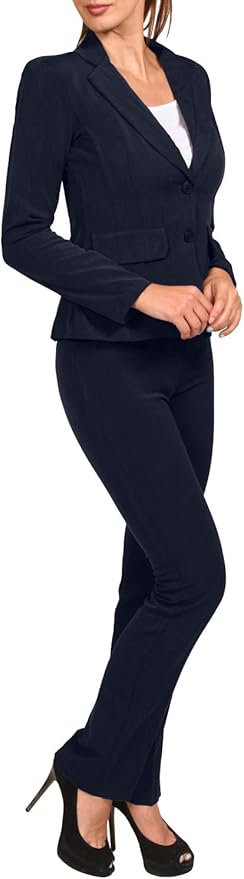 Women's Business Office 1 Button Blazer Jacket and Pants Suit Set