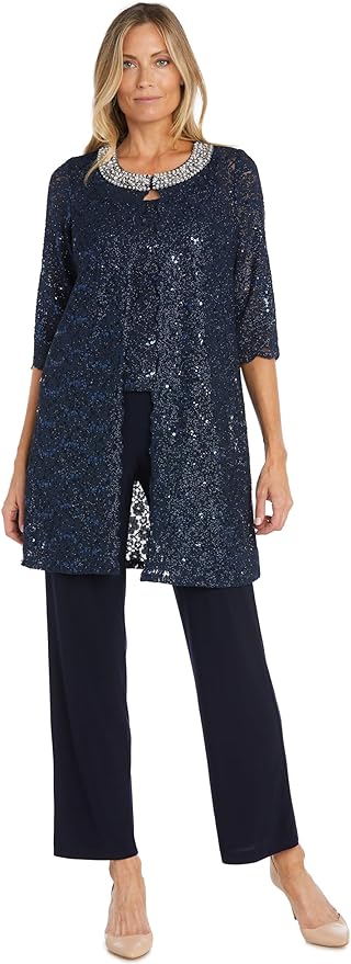 Women's Embellished 3 Pc Lace Pant Suit