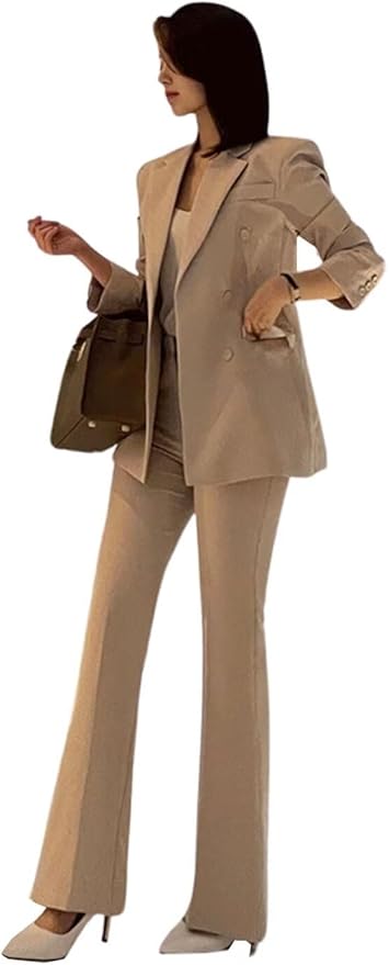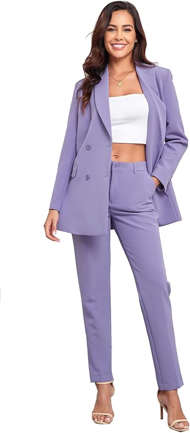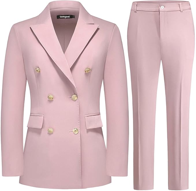 Women Pants Suit Double Breasted 2 Piece Blazer Set Work Casual Jacket Outfits for Business