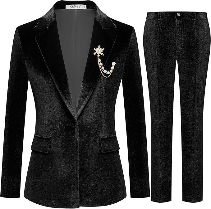 Women's 2 Piece Suit Notch Lapel One Button Slim Fit Business Party Wedding Tuxedo Blazer Pants Set