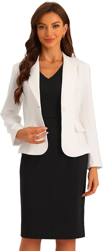 Business Dress Suit Sets for Women's 2 Piece Outfit Work Office Notched Lapel Jacket Blazer Solid V Neck Dress