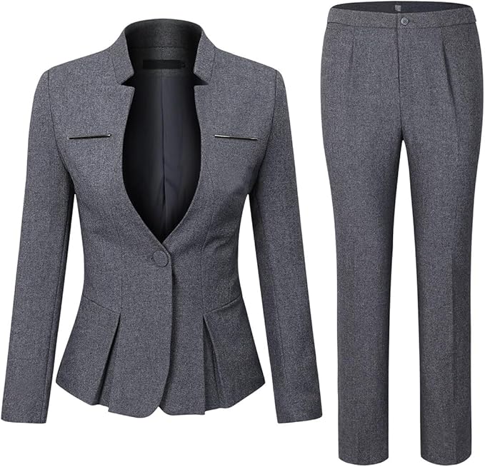 Womens Suit 2 Piece Set Business One Button Peak Lapel Blazer Jacket with Pants for Office Ladies
