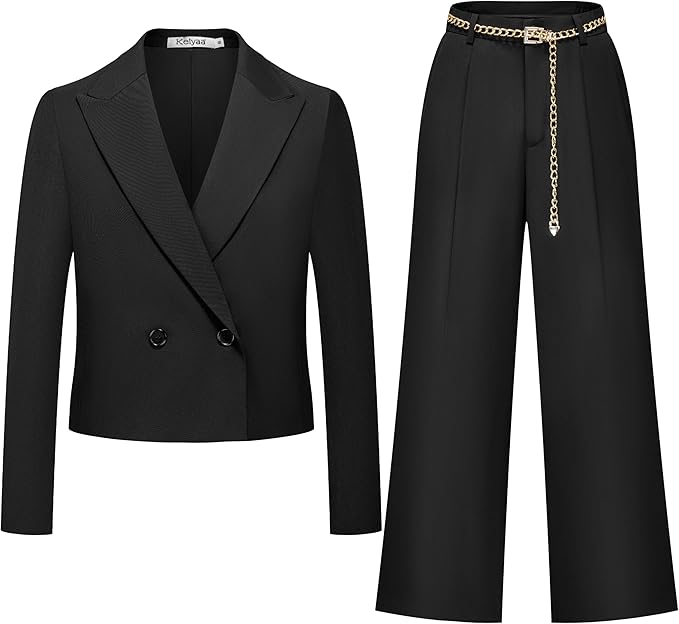 Women's Two Piece Outfits Business Casual Cropped Blazer Jackets and Wide Leg Pants Suit Sets Work Clothes