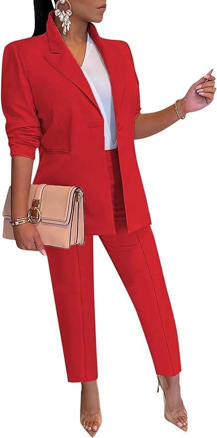 Women's 2 Piece Pants Suit Long Sleeve Button Blazer and Pencil Pant Set Casual Office Business Outfits