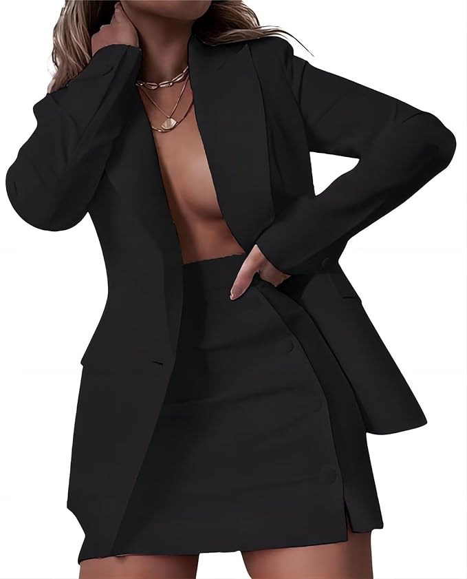 2 Piece Business Suit Outfits Casual Open Front Blazer High Waisted Mini Skirt Suit for Women Set