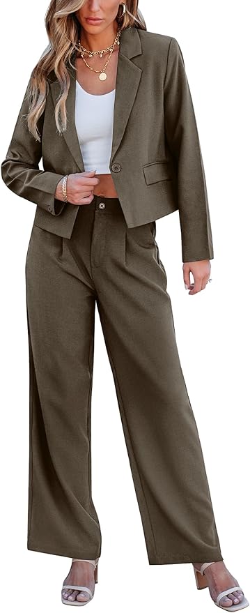 Suits for Women 2 Piece Sets Business Casual Outfits Dressy Cropped Blazer Wide Leg Pants Suit Office Work