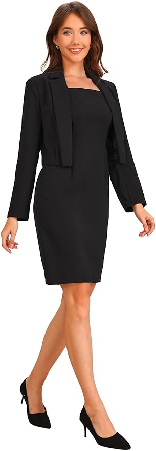 Business Blazer Suit Sets for Women Casual Long Sleeve Blazer and Sleeveless Split Dress Work Office Outfits